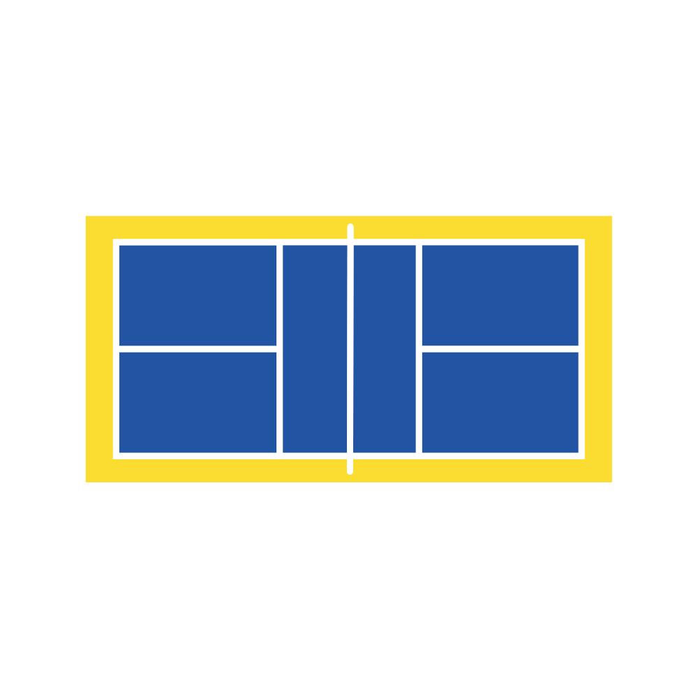 The court is divided into right and left service courts by a centerline, with baselines at the back and sidelines marking the outer boundaries.