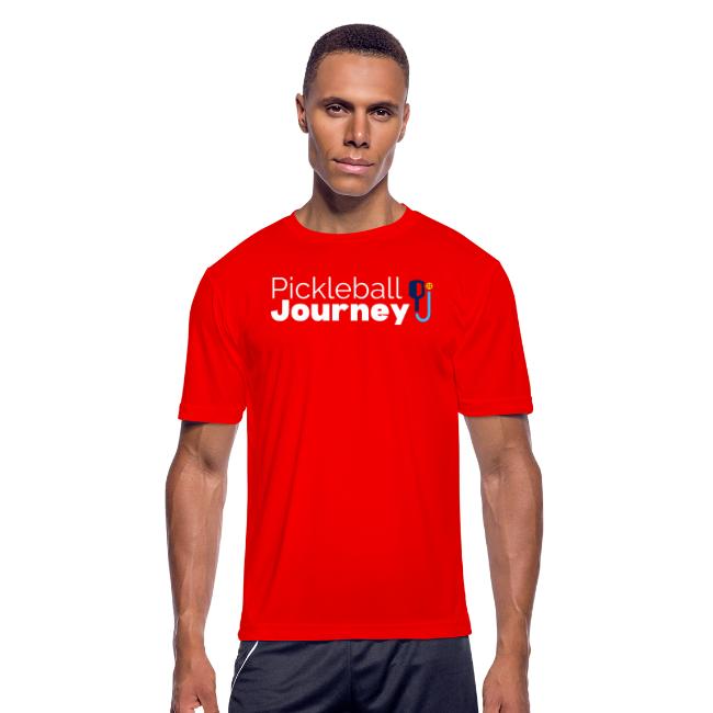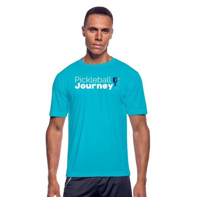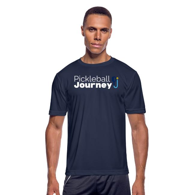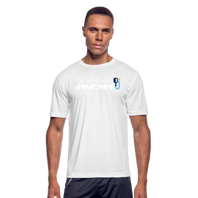 Introducing the Pickleball Journey White Men's T-Shirt. Made with high-quality materials, this shirt is designed to provide both comfort and functionality for your pickleball journey. With its sleek white design, you'll look and feel your best on and off the court.